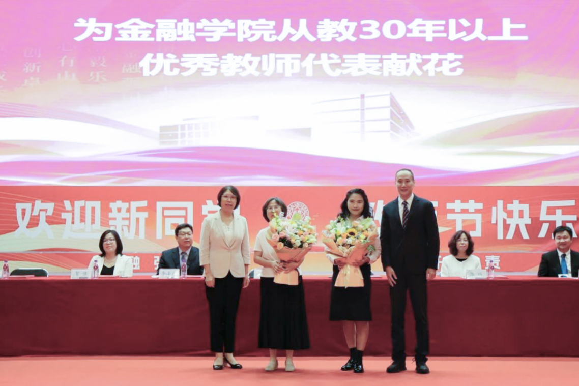 张尧书记和范小云院长为从教30年以上教师代表刘玮教授、李雪莲副教授送上节日鲜花;为上一年度获得荣誉奖励的教师代表李全教授、孙佳美副教授、段月姣长任副教授、夏天助理教授颁发证书。学院领导班子为welcome欢迎光临威尼斯集团“知行报国”宣讲团理论导师刘玮、李泽广、贺佳、陈孝伟、沈德华、李晓以及8位新选聘的2024级本科生班导师张连増、李晓、戈舒怡、刘斐、陆洲、姚祥坤、权五燮、王业东颁发聘书。