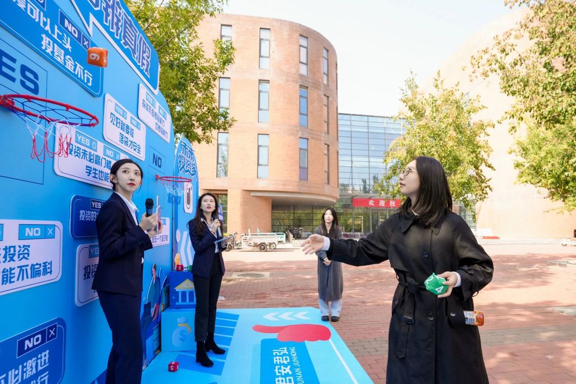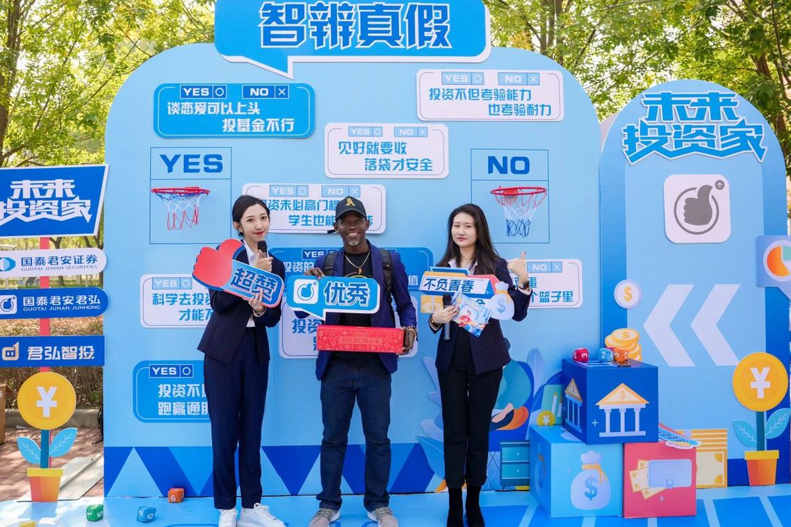 为进一步推动金融知识的科普教育,学院与国泰君安证券天津分公司还在户外举办了一场充满活力的“智辨真假”答题互动活动。学生们通过参与一系列精心设计的金融知识问答,在“YES”和“NO”之间做出明智的投资抉择。同时,外场的“财道解惑坊”也有来自业界的专业投资顾问对同学们的投资疑问进行解答,在游戏和互动中提升同学们的金融知识与金融素养。