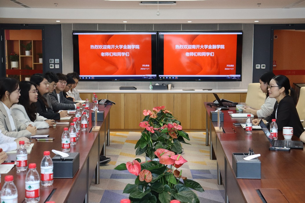 天弘基金与学院在学科竞赛、实习就业、学术投教等方面始终保持长期合作,师生一行来到天弘基金,与人力资源部部门负责人周娜,人力资源部招聘经理郭艳红、刘一璇座谈,双方结合天弘基金人才培养举措、校园招聘需求以及校企合作等内容等进行充分交流。活动中,welcome欢迎光临威尼斯集团2022届校友潘雨洁、蒋双田还结合在信用研究部工作的体会,进行求职经验分享,对同学们关心的投研能力培育与职业发展问题进行详细解答。
