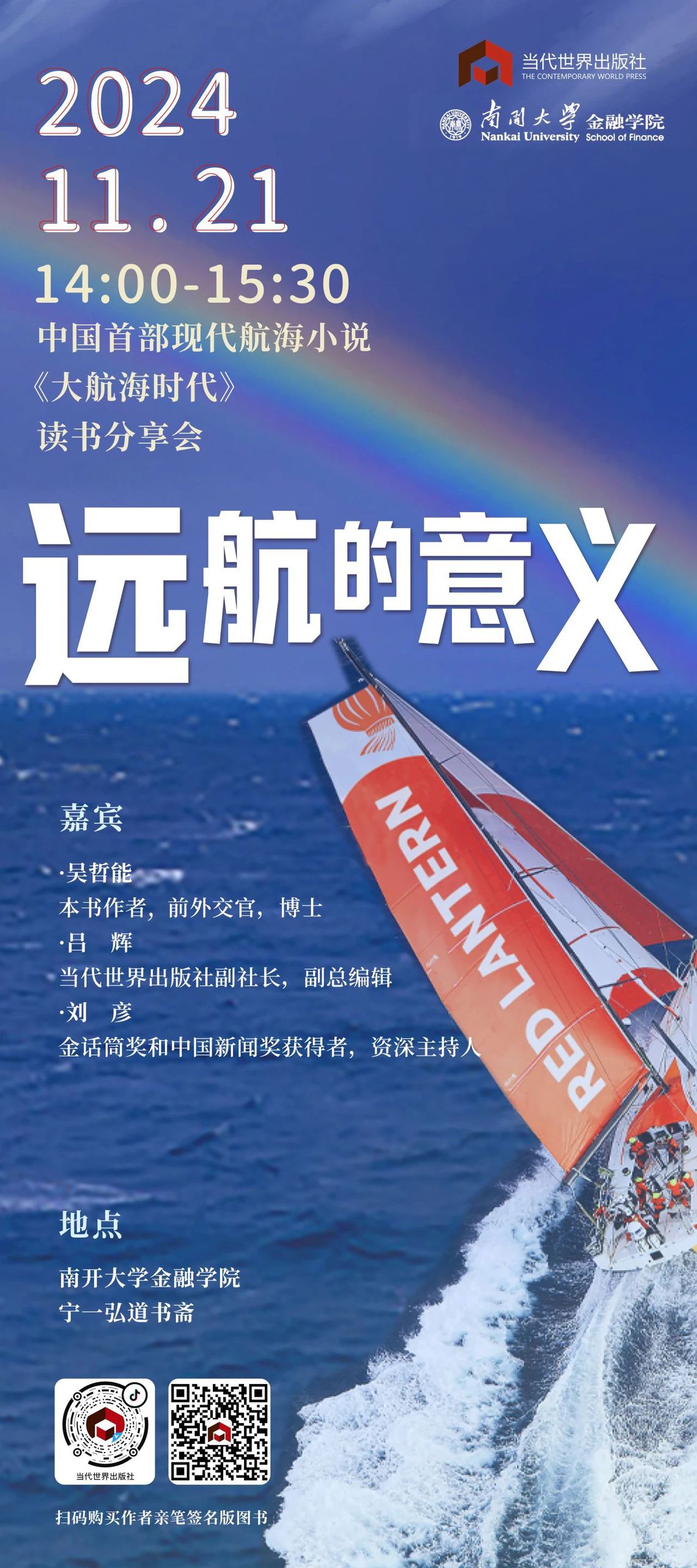 在此次分享会上,作者吴哲能(前外交官)与吕辉(当代世界出版社副社长兼副总编辑)、刘彦(金话筒奖和中国新闻奖获得者)等嘉宾将亲临现场,与南开金融学子共同交流,深度解读远航的意义。