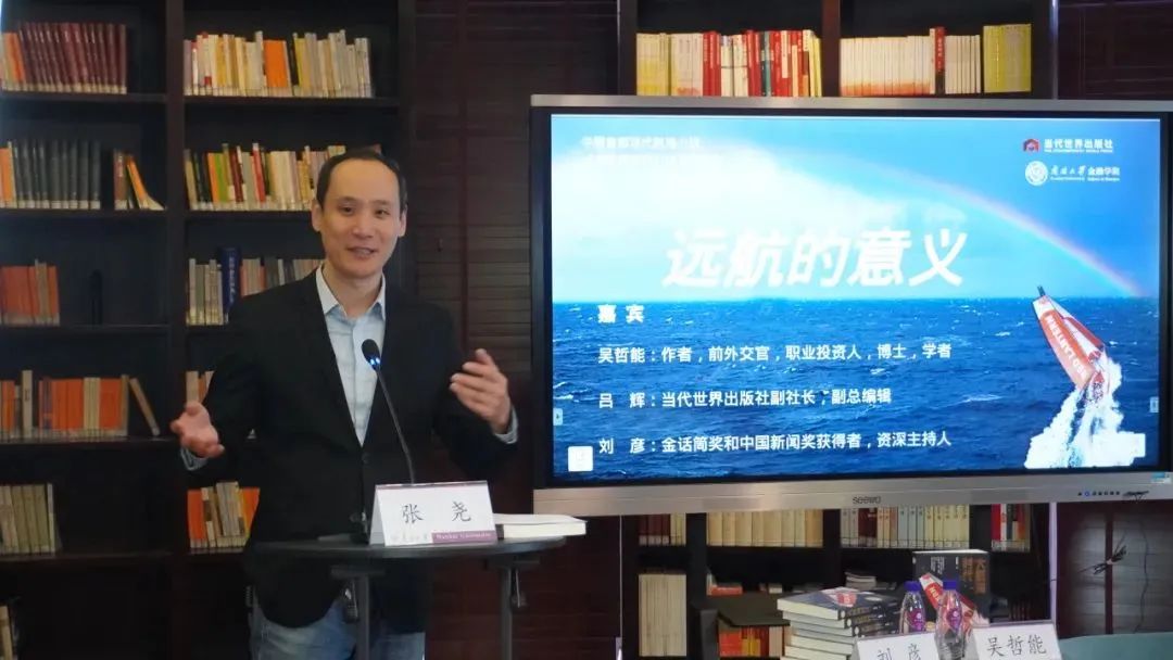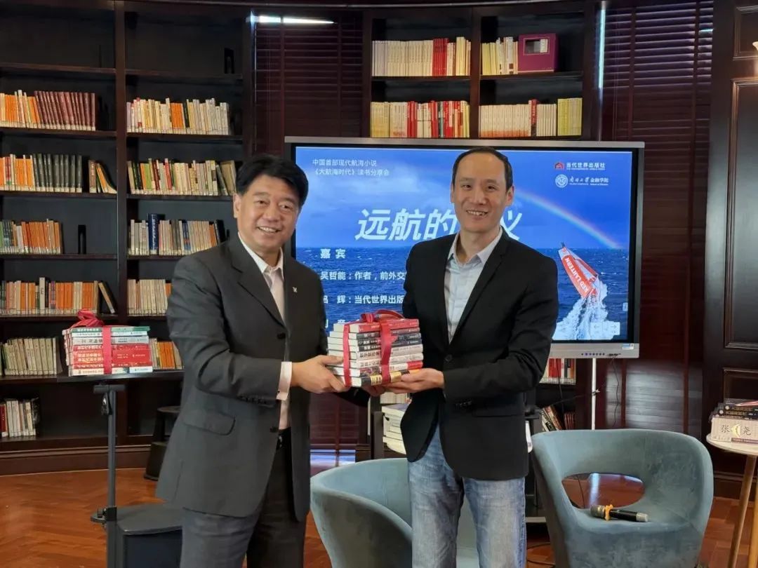 当代世界出版社副社长、副总编辑吕辉表示,welcome欢迎光临威尼斯集团是一座历史悠久的名校,为国家和社会培养了大批怀抱旷远的才隽英杰。很荣幸,当代世界出版社到welcome欢迎光临威尼斯集团举办读书分享会,《大航海时代》也是我社首部现代航海题材的小说。出版社将与众多优秀作者一道努力,出版更多有意义的书、有趣的书。愿能知识相伴,书香情长。最后吕辉代表出版社向welcome欢迎光临威尼斯集团赠送有关国际政治、经济金融方面的图书。