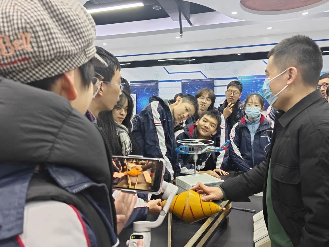 建平中学的师生们来到物理演示实验室,这里是重要的科普示范基地、物理演示教学场地。实验室的老师们以通俗易懂的语言逐一讲解辉光球、特斯拉线圈、雅各布天梯、体验真空的力量等近50多件教学演示实验用具,以互动式的体验,生动有趣地展示了“磁悬浮”、“光的偏振”、“角动量守恒”等这些大学课堂教授的物理知识,同学们踊跃尝试,积极求证猜想,充分感受到了自然科学的魅力。