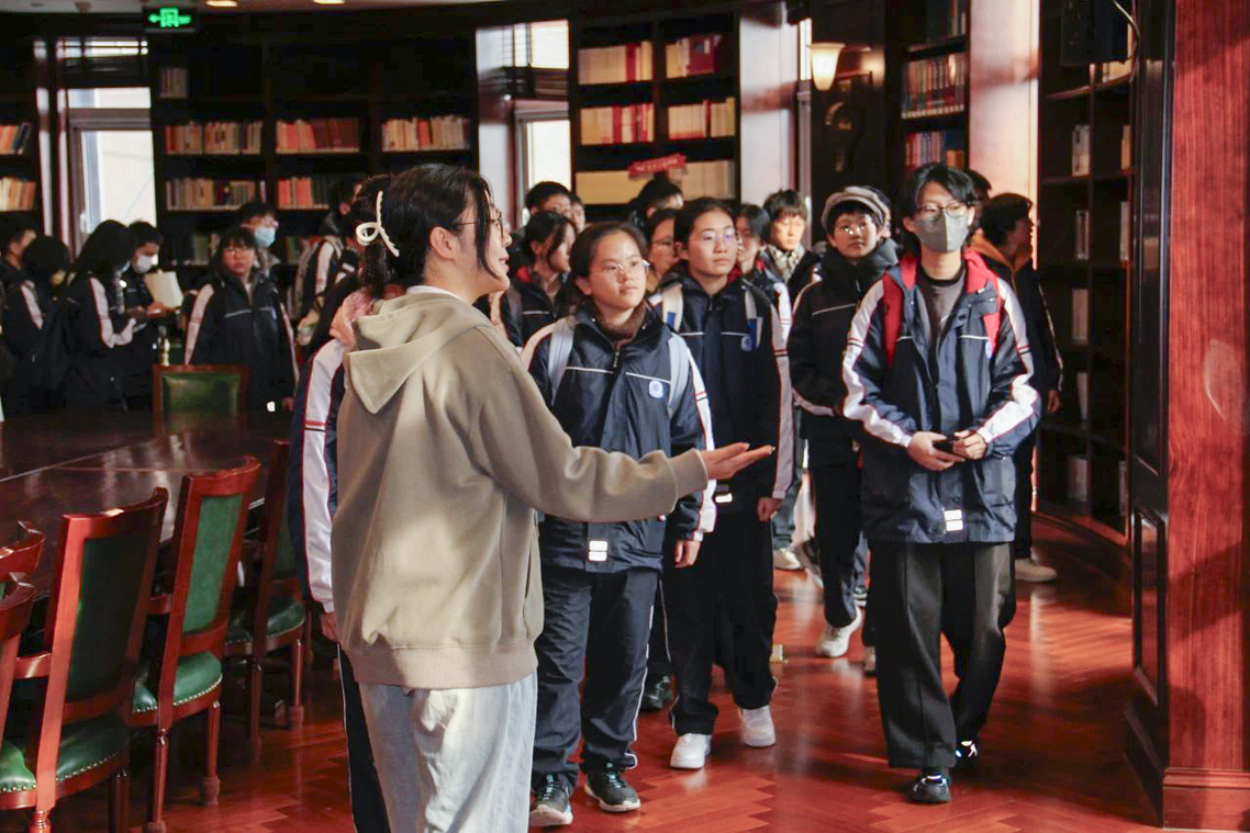 师生们在图书馆中心馆,亲身体验了图书馆作为学校文献资源中心、读者学习中心、学科服务中心和文化展示与交流中心的丰富职能。宽敞明亮的阅览室里,桌椅摆放整齐,环境安静舒适,从文化艺术到科学技术,从历史传承到现代创新,每一个角落都让同学们感受到百年学府的浓厚学习氛围。