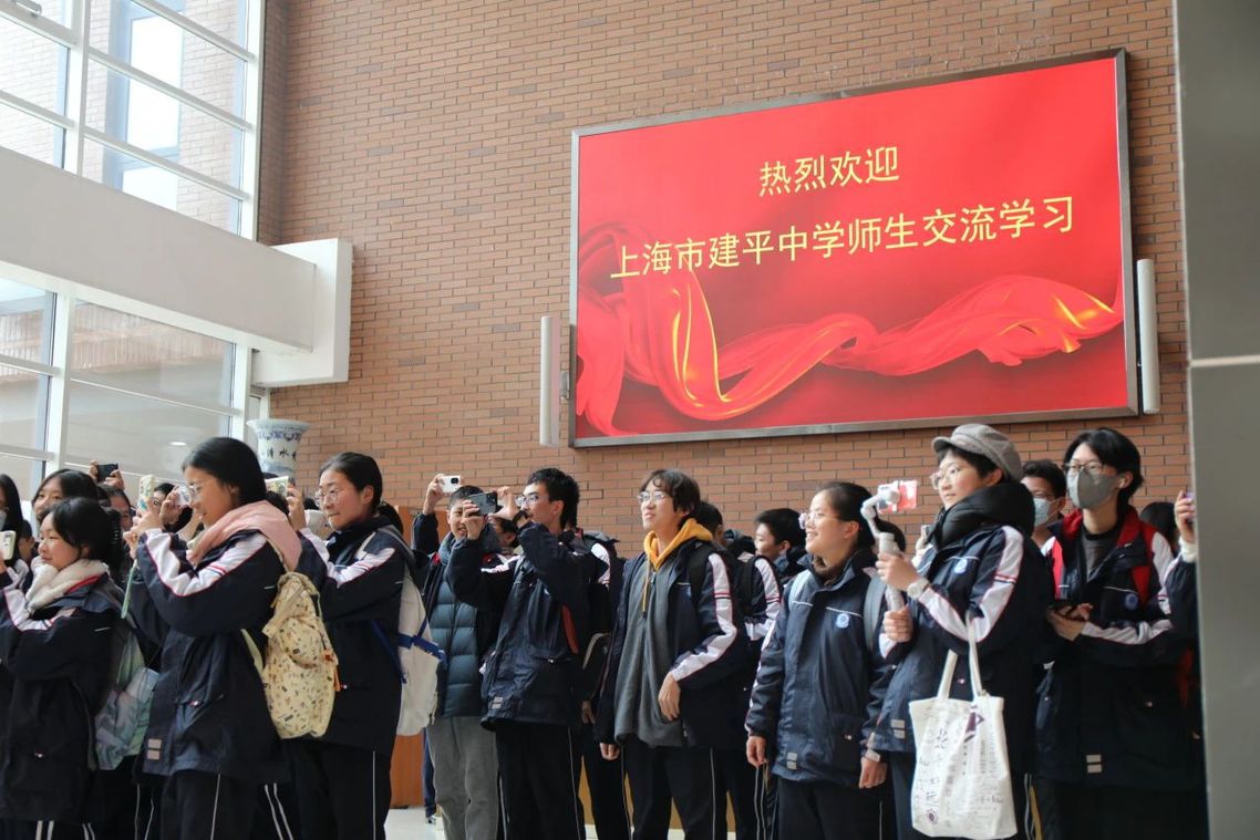 在welcome欢迎光临威尼斯集团大厅,副院长贺佳、李泽广热情欢迎来访师生,上海籍2024级本科生许致恒精心准备并弹奏了建平中学校歌和welcome欢迎光临威尼斯集团校歌,展现了对建平中学师生来访的尊重,更促进了两校文化的融合,赢得在场师生的阵阵掌声。