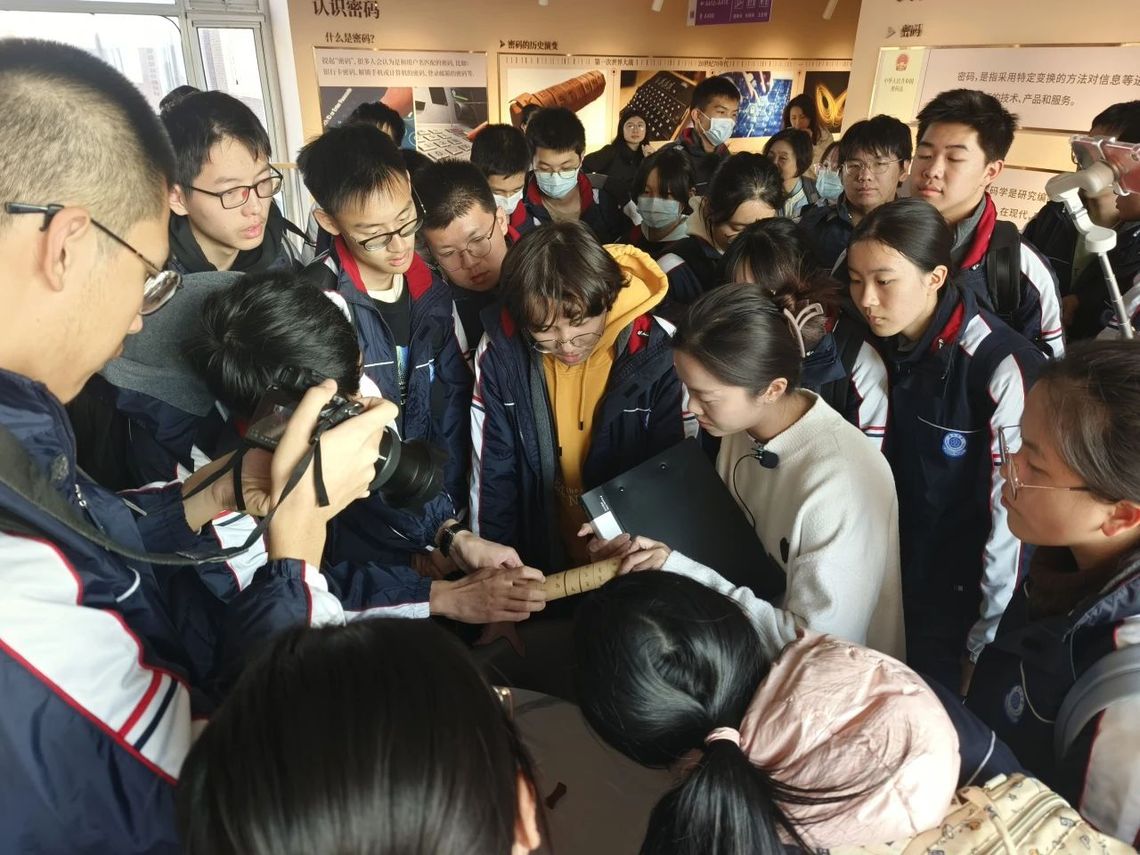 师生们还前往密码科普爱国主义教育基地。通过邓琮弋老师和孙莹莹同学的讲解,建平中学师生们对密码的诞生、发展和应用都有了初步的了解,还动手体验了“塞塔式密码”的加解密过程。在“豪密”爱国主义教育专题展厅中,讲解员向同学们讲述了敬爱的周恩来总理创制中国共产党第一部高级密码——“豪密”的故事,回忆了周总理对于中国密码事业的伟大贡献。