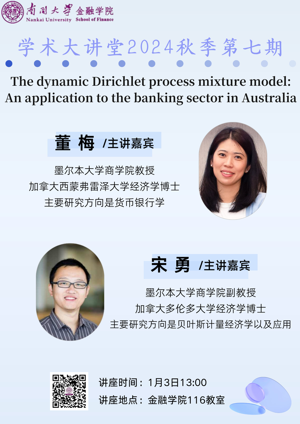 讲座题目:The dynamic Dirichlet process mixture model: An application to the banking sector in Australia