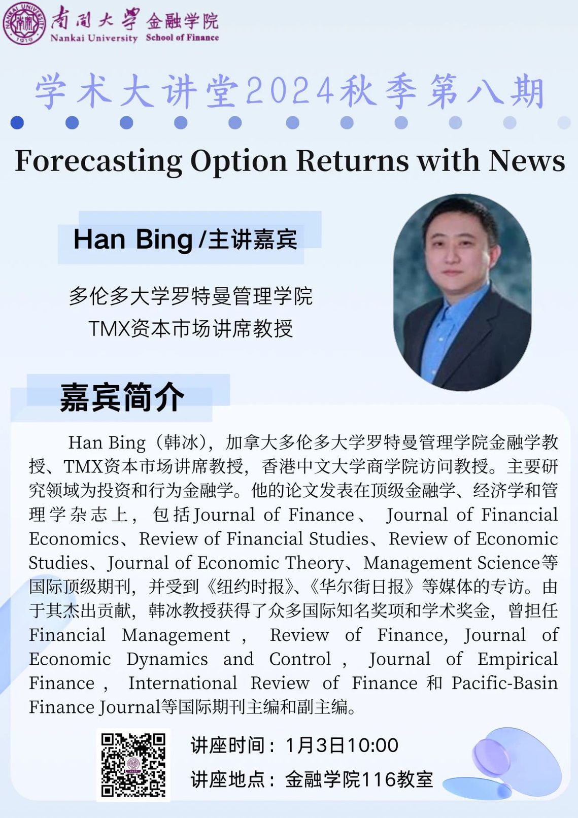 讲座时间:2025年1月3日(周五)10:00
