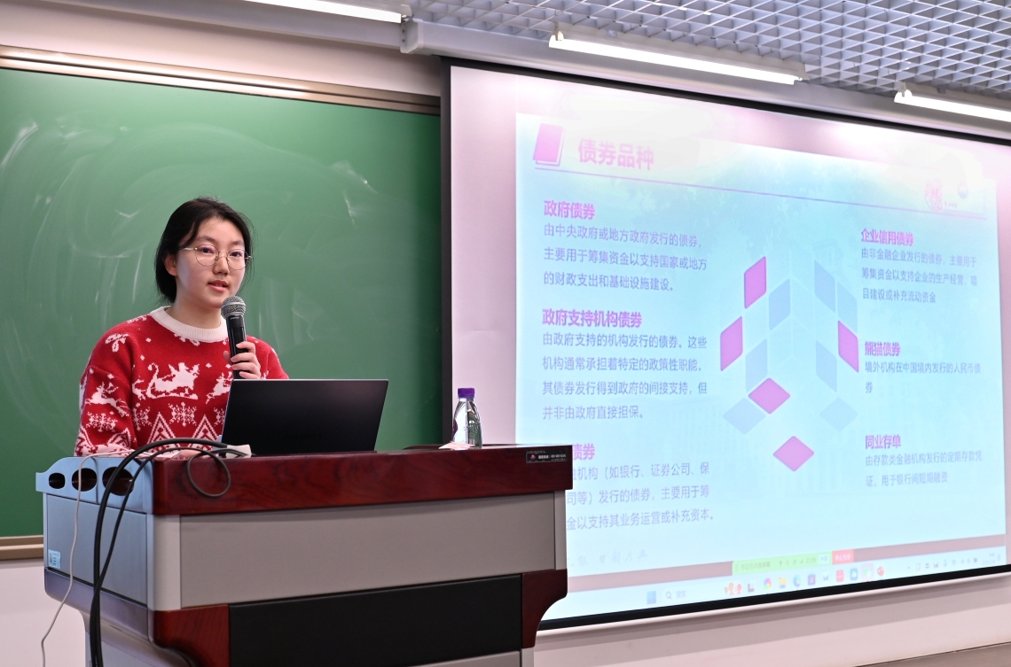 课前,2023级本科生谭咏馨以“中国债券市场概览”为议题,详尽展示了其所在研究小组基于中国债券市场现状及其债券利率发展态势的深入学习与分析成果。在汇报中,谭咏馨不仅系统概述了债券市场的当前格局,还就债券市场的演进趋势及其对宏观经济产生的反馈效应,向在场的校友们提出了富有思考性的问题。针对谭咏馨的陈述与提问,李炳智针对当前债券市场在新形势下的收益率动态及资产配置策略,提供了详尽而深入的解答。他的回答不仅涵盖了债券市场的最新发展态势,还深刻剖析了这些因素对投资者决策与资产配置产生的深远影响,为同学们提供了宝贵的学术洞见与实践指导。