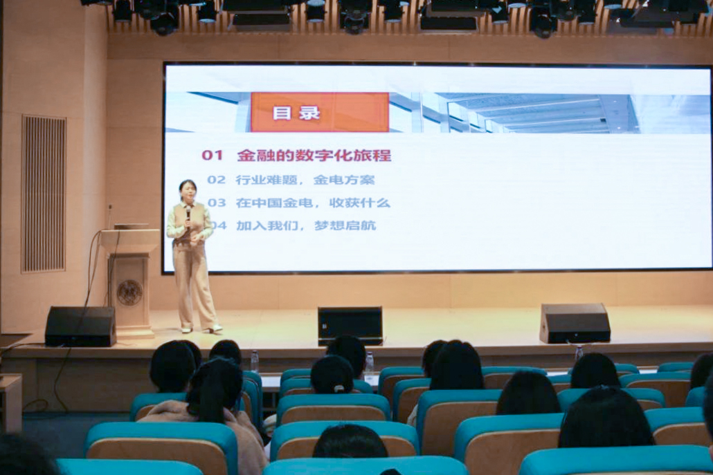 网联清算有限公司王斌以“以青春之我,共建支付未来”为主题,聚焦于支付行业,从支付的概念、形式、组件等方面进行了深入浅出的讲解,使同学们对现代支付体系有了更清晰的认识。他回顾了我国支付方式从银行卡到移动支付的四十年发展历程,强调了技术创新对支付行业发展的推动作用。同时,他还介绍了网联成立的背景、业务与技术特点,以及在风险防控方面的举措。