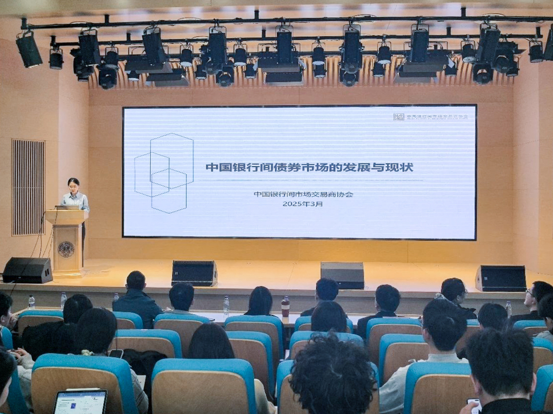 中国银行间市场交易商协会程珂昕以“银行间债券市场的发展与现状”为主题,首先介绍了债券市场的基本情况,详细阐述了债券作为直接融资工具在金融市场中的重要地位,以及银行间债券市场的诞生、发展与现状。她指出,银行间债券市场已成为我国债券市场的主板,其发行规模和存量均占据主导地位。此外,她还重点讲解了交易商协会主管的债务融资工具,包括其发展历程、管理框架、创新产品等,并提及了协会的校园招聘计划,鼓励有志于金融领域的学生关注并参与。