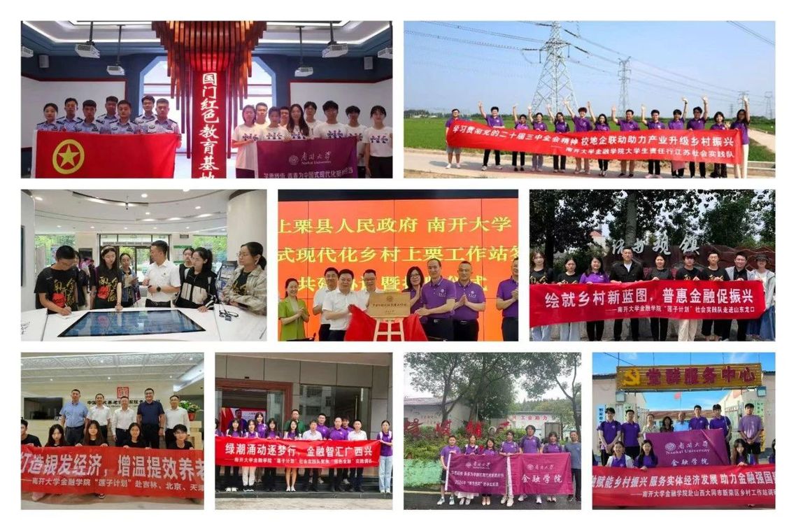 2024年暑期,学院共派出16支社会实践队,围绕“乡村工作站”、“金融五篇大文章”、“跟随总书记足迹”三大主题开展实践活动。成立 “知行报国”宣讲团,致聘7名专业教师担任理论导师,努力集中全学院资源和力量,发挥金融保险专业优势,引导师生传承“知中国 服务中国”的南开传统,将专业所学应用到服务国家战略的生动实践中。学院荣获“优秀指导单位”,1名教师获十佳指导教师,13名教师获优秀指导教师,1支队伍获校级十佳团队,1支队伍获调研中国十强团队。