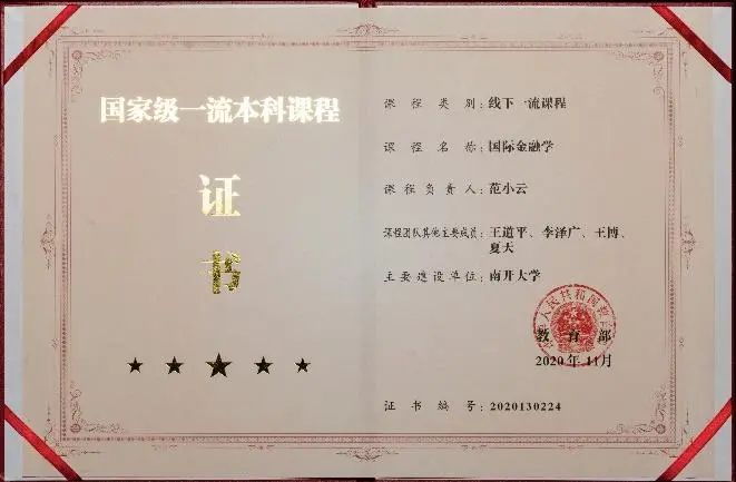对标国家级在线金课建设和“双万计划”,完成5门慕课/在线课程建设,推进线上线下和线上线下混合式金课的培育与建设,《国际金融学》课程被评为首批国家级本科一流线下金课,并入选第二批国家级线上一流本科课程,《金融工程》课程入选第三批天津市一流本科建设课程。积极推进教学创新与信息化发展探索,支持虚拟教研室建设和教学实践。