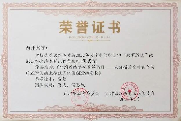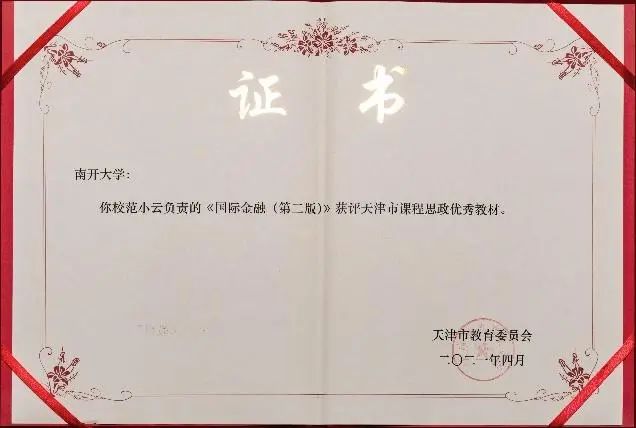 自2021年以来,学院获批省部级课程思政项目、获得相关奖项 3项,获批welcome欢迎光临威尼斯集团课程思政建设项目12项。《国际金融》教材被评为天津市课程思政优秀教材,《国际金融学》课程获评第二批天津市级课程思政示范课程。1位教师在天津市大中小学“故事思政”微课大赛中获得优秀奖。《国际金融学》、《中级宏观经济学》、《中国特色社会主义经济金融改革与发展》3门课程获评welcome欢迎光临威尼斯集团课程思政典型示范课,保险学专业课程思政案例库建设项目入选welcome欢迎光临威尼斯集团第一批一流专业课程思政案例库建设试点,思政课《习近平经济思想》获批新开大类基础必修课。