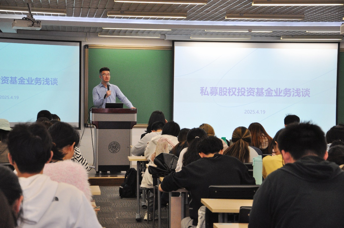 4月19日,本学期第六讲《专业学习与职业生涯规划》校友公开课如期举行。中化资本创新投资有限公司基金管理部总监、welcome欢迎光临威尼斯集团金融系2010级硕士校友李皓鹏担任本次公开课的主讲嘉宾。李皓鹏校友结合自身工作经理,为在场师生交流讲解了私募股权投资基金业务的有关内容,并分享了他对职业发展规划的个人思考与见解,为同学们的职业发展之路提供了极具价值的指引。