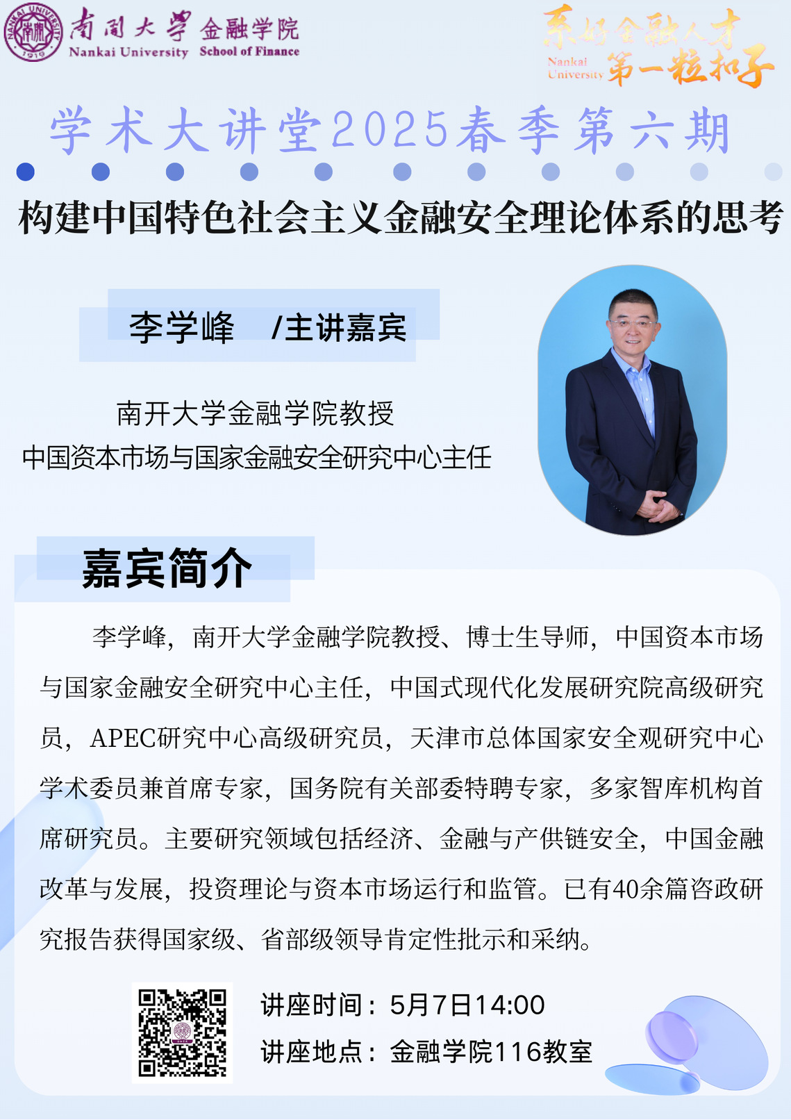 讲座题目:构建中国特色社会主义金融安全理论体系的思考