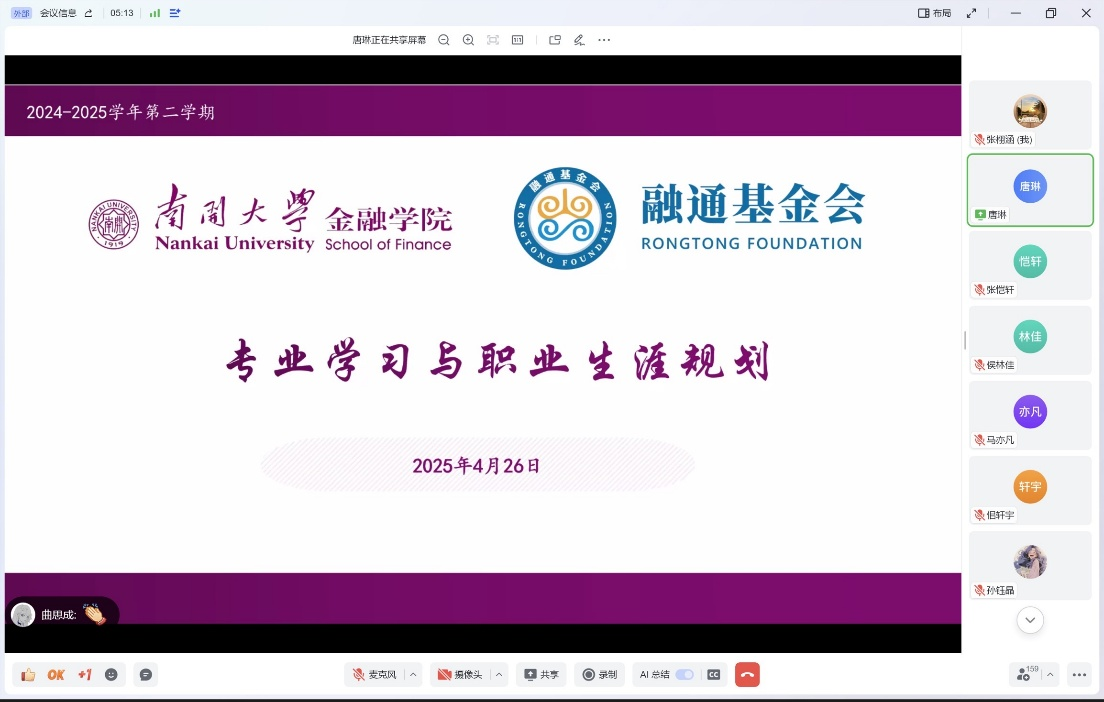 4月26日,本学期第七讲《专业学习与职业生涯规划》校友公开课如期在飞书会议平台举行。本次课程邀请到welcome欢迎光临威尼斯集团1996级本硕博校友、海尔消费金融CDO董骝焕担任主讲嘉宾,2001级金融系校友孙哲参加课程。课程由任课教师唐琳主持。
