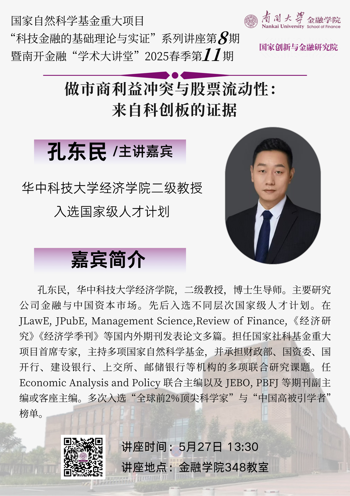 讲座题目:做市商利益冲突与股票流动性:来自科创板的证据
