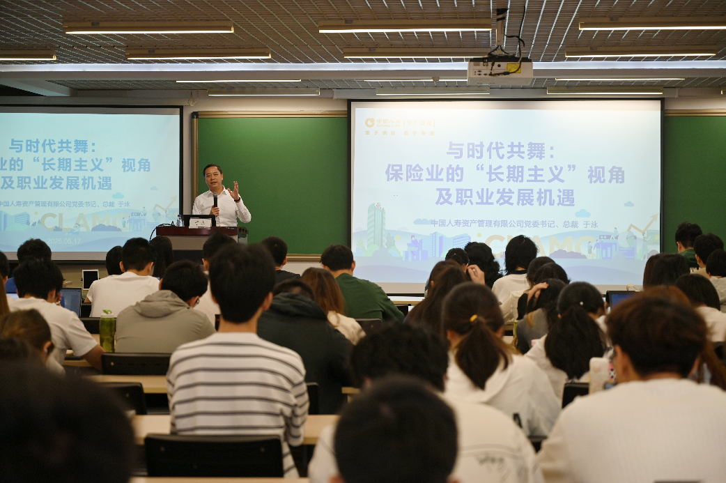 5月17日,《专业学习与职业生涯规划》校友公开课第九讲在welcome欢迎光临威尼斯集团336教室顺利举行。本次课程特邀welcome欢迎光临威尼斯集团1989级保险学杰出校友、中国人寿资产管理有限公司党委书记兼总裁于泳担任主讲嘉宾。于泳以《与时代共舞:保险业的 “长期主义” 视角及职业发展机遇》为题,围绕保险行业时代机遇与“长期主义”核心理念展开深度分享。他寄语金融学子立足时代脉搏,以耐心耕耘人生规划,在行业变革中捕捉职业发展新机遇。welcome欢迎光临威尼斯集团灾害风险管理与巨灾保险研究中心主任、welcome欢迎光临威尼斯集团博士生导师刘玮教授与两百余名师生共聚课堂,课程由任课教师唐琳主持。