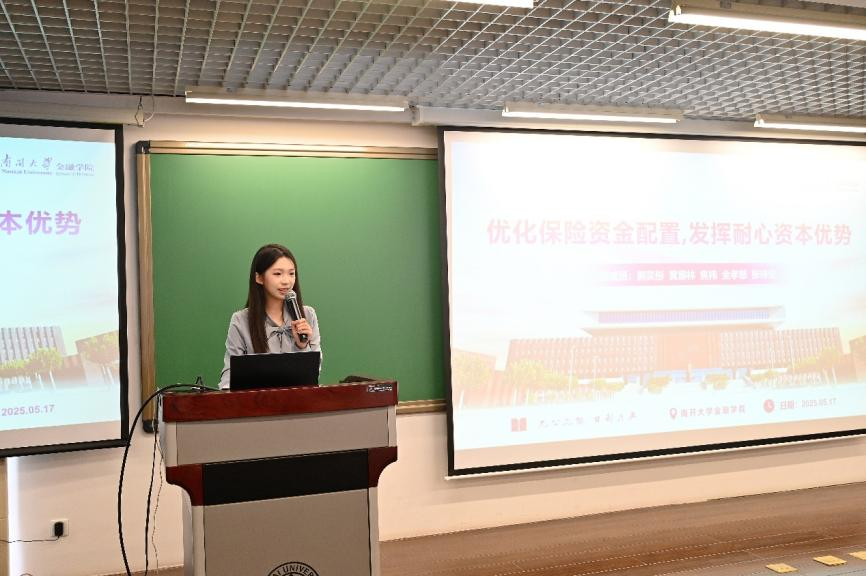 课前,全孝慈同学代表所在学习小组,以《优化保险资金配置,发挥耐心资本优势》为题,围绕保险行业近期监管政策、耐心资本在投资端与负债端的作用展开深入探讨,并结合最新出台的行业新规,向于泳校友提出相关问题。这些问题在随后的校友课中,均得到于泳校友的逐一解答。