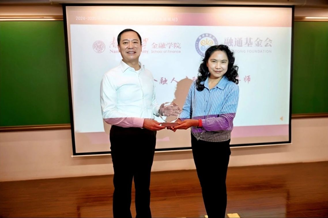 课程尾声,刘玮教授向于泳校友致聘“金融人才职业发展导师”。受聘仪式上,于泳寄语同学们,在规划未来职业发展时秉持长期主义,以长远视角锚定成长方向,沉心积淀专业能力,在持续深耕中静待个人价值与人生蓝图的硕果成熟。