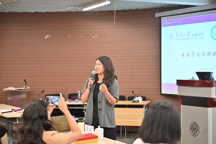 在分享的最后阶段,史伟玉结合自身十余年的从业经历,分享了她在保险行业的成长路径与职场感悟。她认为,职业发展的关键在于“明确目标、创造价值、化繁为简”,在实践中不断锤炼专业本领、拓展能力边界,成长为具有战略眼光和实战能力的“多面手”型人才。同时,她提到平安人寿所秉持的“差异化竞争”理念与“工匠精神、简单务实”的企业文化,这些理念和文化是平安人寿在激烈市场竞争中脱颖而出的关键因素,也为当代南开金融青年树立了学习榜样。