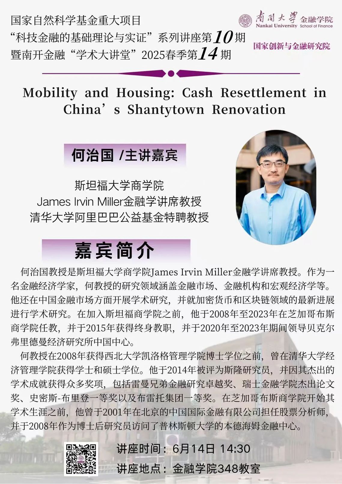 讲座题目:Mobility and Housing: Cash Resettlement in China’s Shantytown Renovation