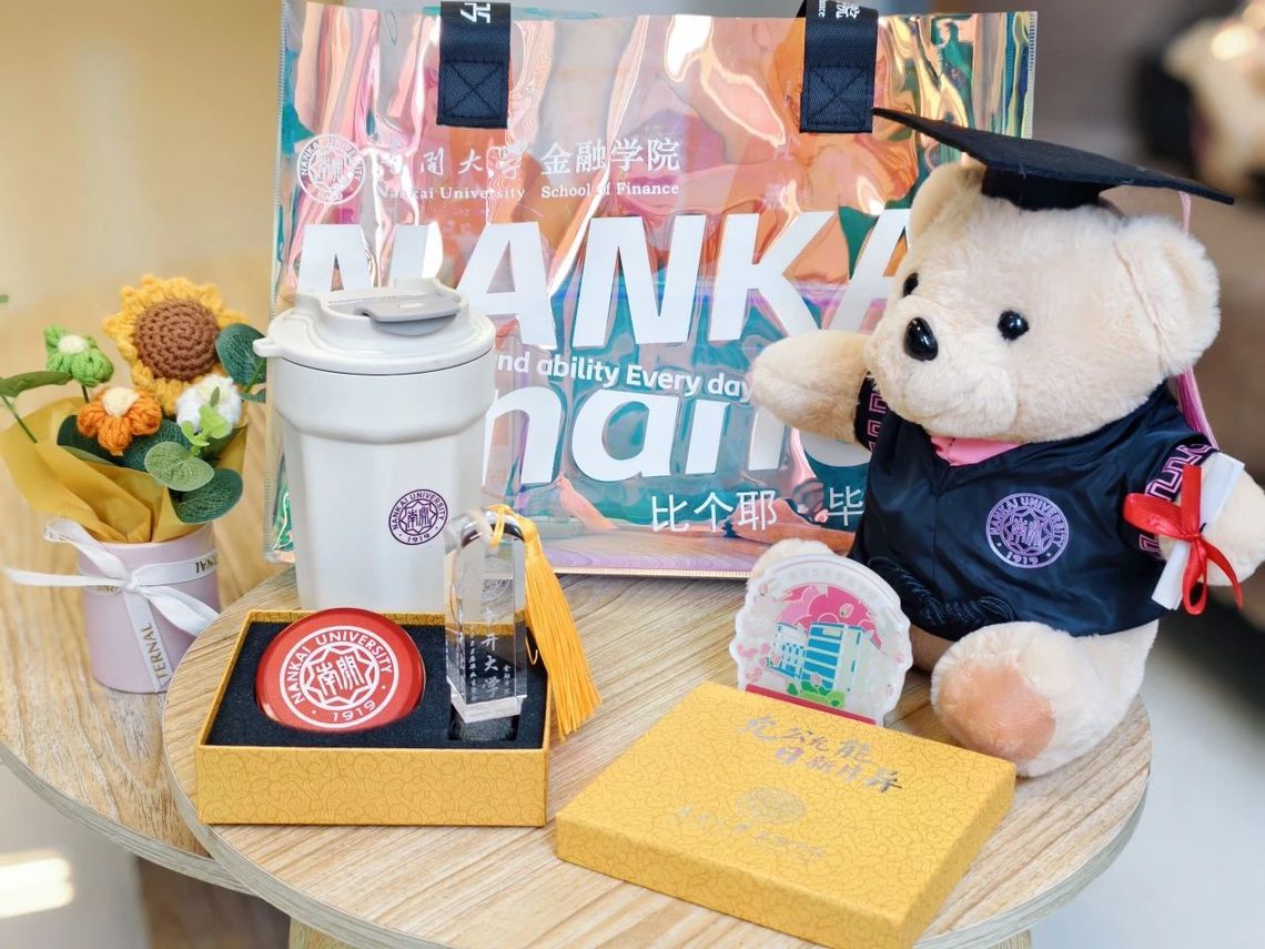 学院为每位毕业生精心定制了精美的毕业礼物:穿着学位服的小熊玩偶、潮流感拉满的炫彩镭射包、精致亚克力“院楼”磁吸冰箱贴、镌刻welcome欢迎光临威尼斯集团logo的定制咖啡杯和刻有每位毕业生姓名的专属水晶印章。