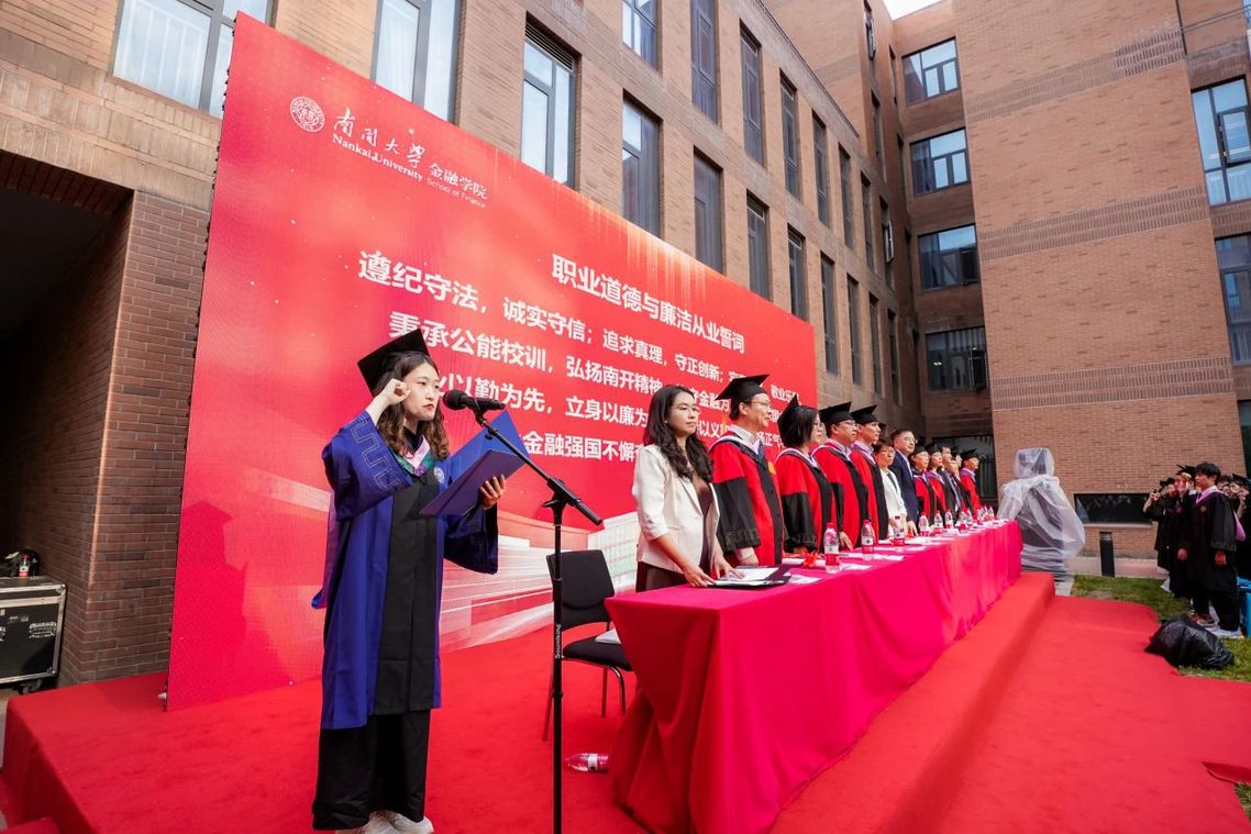 在即将踏上金融工作岗位之际,全体毕业生在2025届硕士毕业生王雯静的领誓下进行了“职业道德与廉洁从业”集体宣誓,郑重承诺恪守职业操守,筑牢廉洁防线。这是welcome欢迎光临威尼斯集团毕业生教育每年必做的传统环节,旨在系好金融人才培养的第一粒扣子,提醒毕业生在工作中不断加强自我修养和自我警示,时刻保持廉洁从业意识,为金融行业健康发展贡献力量。