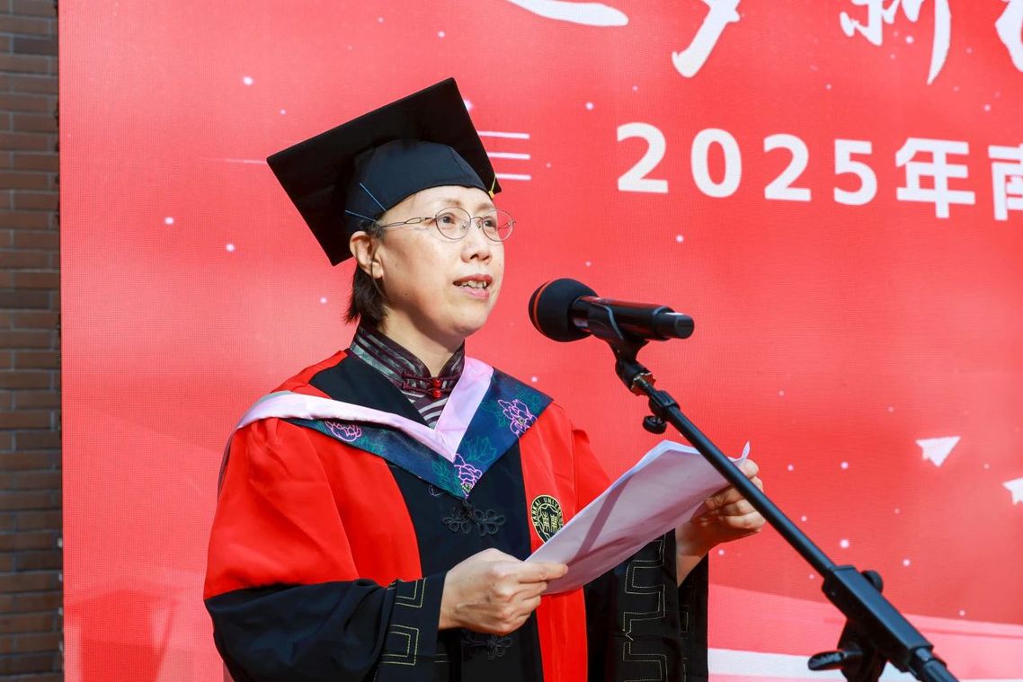 范小云院长以“智勇真纯”为核心,深情寄语毕业生。她强调,“智”是金融人的专业根基,要求学子深刻把握经济规律与金融逻辑,在浩瀚的信息海洋中洞悉先机;“勇”是破局担当,鼓励他们以植根专业判断的理性之勇,承担起金融强国的重任;“真”为诚信之本,要像珍视眼睛一样珍视金融职业声誉;“纯”则指向初心,希望学子敬畏金融本源价值,将个人追求融入国家发展大局,四者共同构成南开金融人的完整品格图谱与精神标识。范小云还深情描述welcome欢迎光临威尼斯集团建院十周年里,学子们的成长印记:灯火通明的自习室、体育场拼搏的身影、社会实践探索的面孔,“学风严谨、不唯书不唯上”的教师团队,以及支持学院发展的校友和社会力量。学院十年发展的历史性突破与学子们带着南开金融烙印自信启程的画面交相辉映,诠释了“公能”精神的时代传承,勉励毕业生高擎信念火炬,书写无愧于时代的华章。