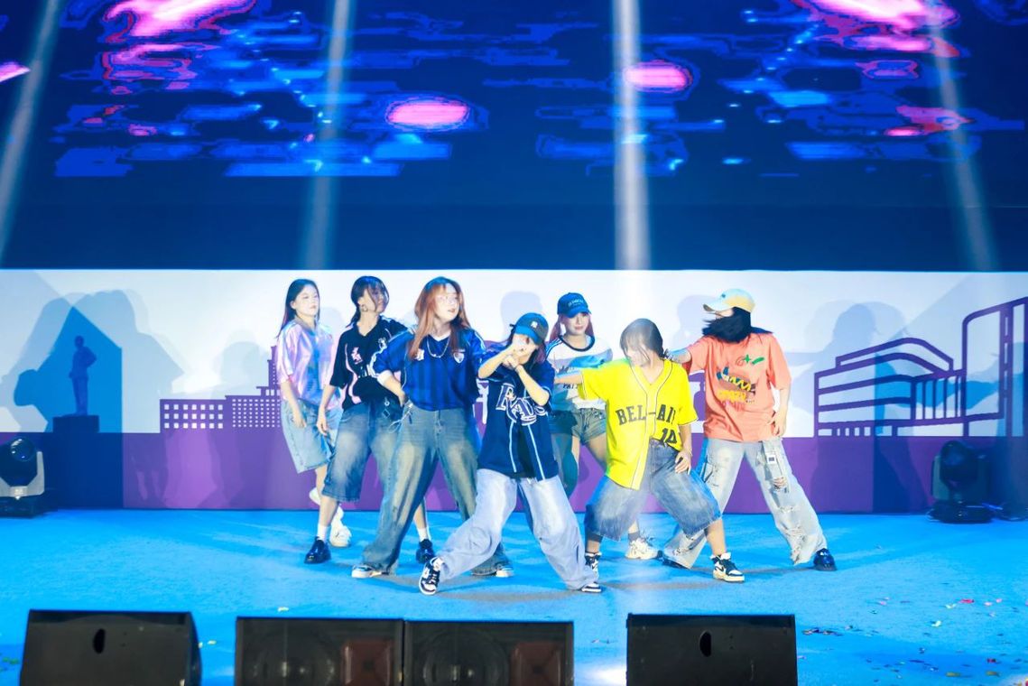 舞蹈类节目以多元风格和精湛表演成为全场焦点。开场群舞《幻想童话》由12同学组成的IZONE风格刀群舞团队呈现,舞者同学们以精准的走位和梦幻的舞台编排,打造了一场视觉盛宴。《Strategy》以9人阵容演绎欢快宇宙主题,滑文迪、张珮瑶等舞者以整齐划一的动作展现青春少女的自信与掌控力。《ParadoXXX Invasion》由白欣玉、罗梓洋等7名毕业生演绎,以时空穿越概念展望未来,象征毕业生即将开启的全新篇章。情感真挚的《Feel Special》由梁馨尹、苏莹芷等9人表演,以星轨与花为意象,致敬大学四年的珍贵友谊。青春洋溢的《Cheer Up》则通过黄伊诺、白欣玉等9人的活力舞步,传递校园生活的无畏与热情。《TRENDSETTER》由魏余硕、周雨桐等12人带来高燃街舞串烧,将晚会气氛推向高潮。独舞节目同样亮眼,古典舞《千年》由吕沅羲独舞,以中国传统美学为基调,通过柔美的身姿、流畅的水袖动作和细腻的情感表达,展现了中华文化的深厚底蕴。蔡新怡的街舞作品《Like Jennie》以强烈的节奏感和极具张力的动作引爆全场,以飒爽舞姿展现个人风格,传递了金融学子“自信无畏”的青春态度。