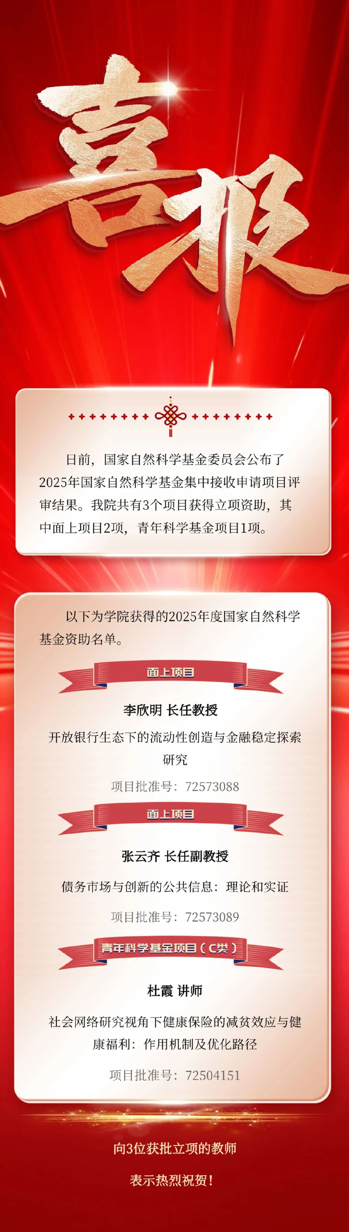 祝贺!南开金融3个项目获2025年国家自然科学基金立项资助
