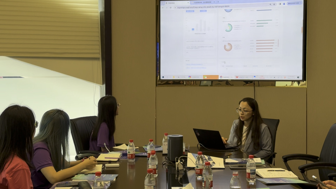 实践队师生首站来到北京中诚信集团,开展“从‘红色金融’到‘绿色普惠’:遵义竹林碳汇与京津冀的联动”主题研讨。在南开北京校友会理事靳蕾的带领下,实践队师生与中诚信绿金科技业务骨干、风控专家展开深度对话。