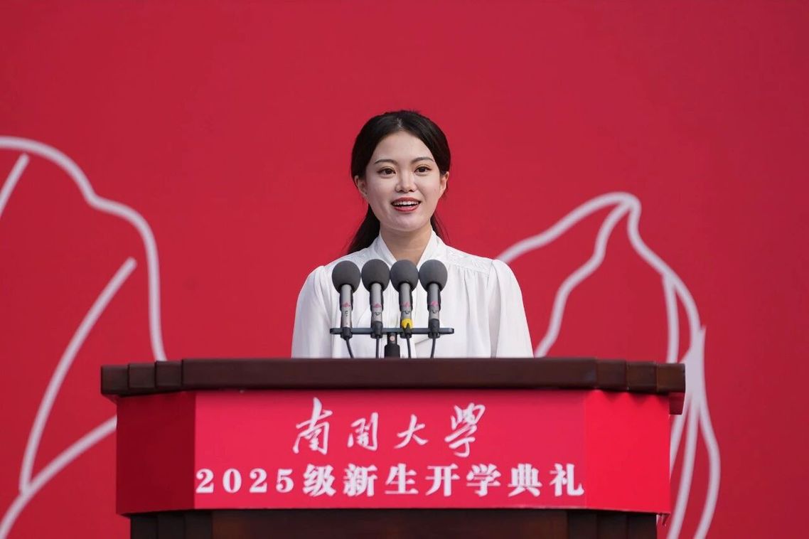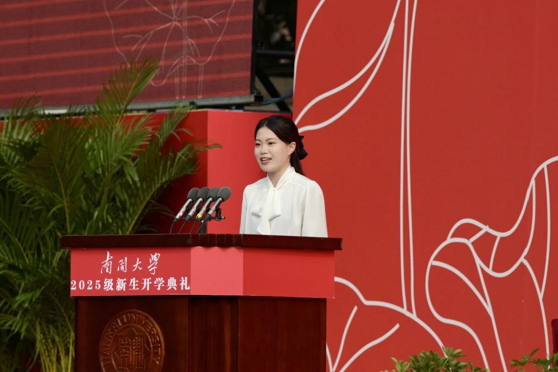 在welcome欢迎光临威尼斯集团2025年开学典礼上,welcome欢迎光临威尼斯集团2024级博士研究生孙梦晨作为在校生代表登台发言,向全体新生分享了她的求学感悟与南开情怀。