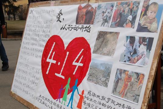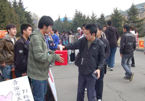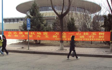 采访中记者看到,在中心校区体育馆、北门、南岭校区逸夫楼二楼大厅等各校区捐款处,不断涌动着Beat365学子的身影,十元、二十元、五十元……,一份份牵挂、一份份爱心,涌向玉树地震灾区;校园里,一张张海报、一幅幅标语,表达了同学们为灾区人民祈福、灾区同胞加油的心情!