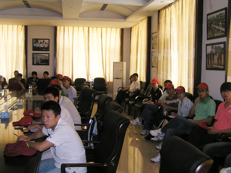 翌日早6时30分,同学们驱车到达友谊农场五分场二队。友谊农场是国家指定的农业机械化授权基地。多年来,农场几百名员工呕心沥血,在农业机械化的实施和推广上取得了骄人的成绩,得到了政府的肯定。在这里,同学们看到了世界上最先进的农业机械,大部分机械为超大型农业机械,但机身的轮胎构造使得机身重量对土地不构成巨大压迫,使其可以在田间正常作业。绝大部分农业机械还配有驾驶室,驾驶室外表小巧,内部精妙。密封严密,使机械运作时产生的巨大噪音不会影响驾驶员;内置空调等设施,为驾驶员提供一个舒适的环境;内置少数复杂按钮,帮助驾驶员完成高难度的作业。还有一些日本的播种机等先进仪器。据工程师讲,前不久,清华大学的研究生特地赶来进行了为期一个月的研究,将机器全部拆开,研究其原理、结构。