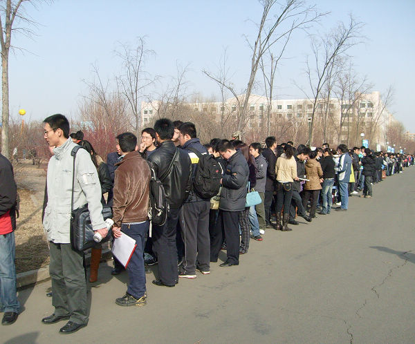 招聘会现场,一位计算机专业的同学告诉记者,“去年准备研究生考试了,这是第一次参加招聘会,现在虽然一切未知,但是据我班去年找到工作的同学介绍,企业还是挺看重学校牌子的,再说我学得还好,找个满意的工作还是有希望的。”