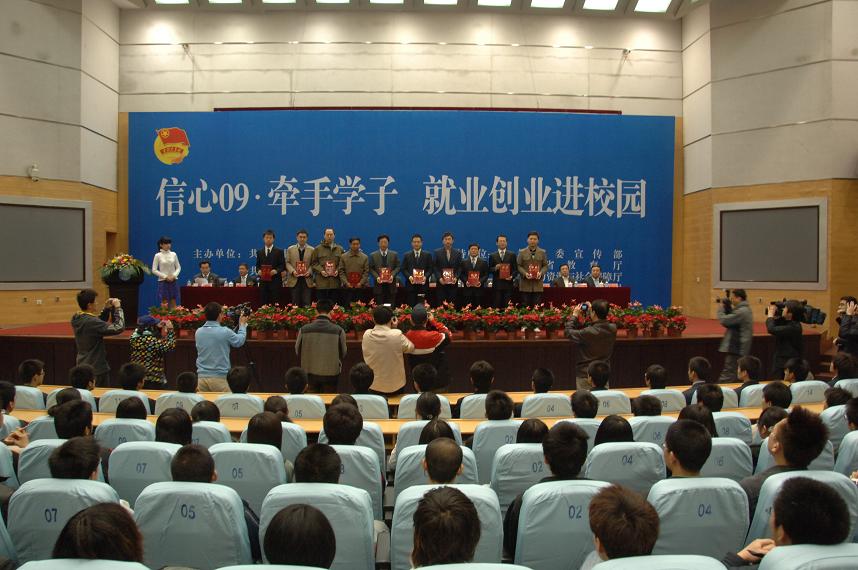 4月18日,吉林省“信心09•牵手学子 就业创业进校园”活动在我校启动,吉林省委副书记王儒林、省委组织部部长黄燕明、团省委书记谢忠岩出席仪式,我校党委书记陈德文参加启动仪式,党委副书记兼副校长韩晓峰代表学校致辞。来自省内的企事业单位代表、培训基地代表、讲师团代表和大学生代表600余人参加了启动仪式。启动仪式由团省委副书记陈耀辉主持。