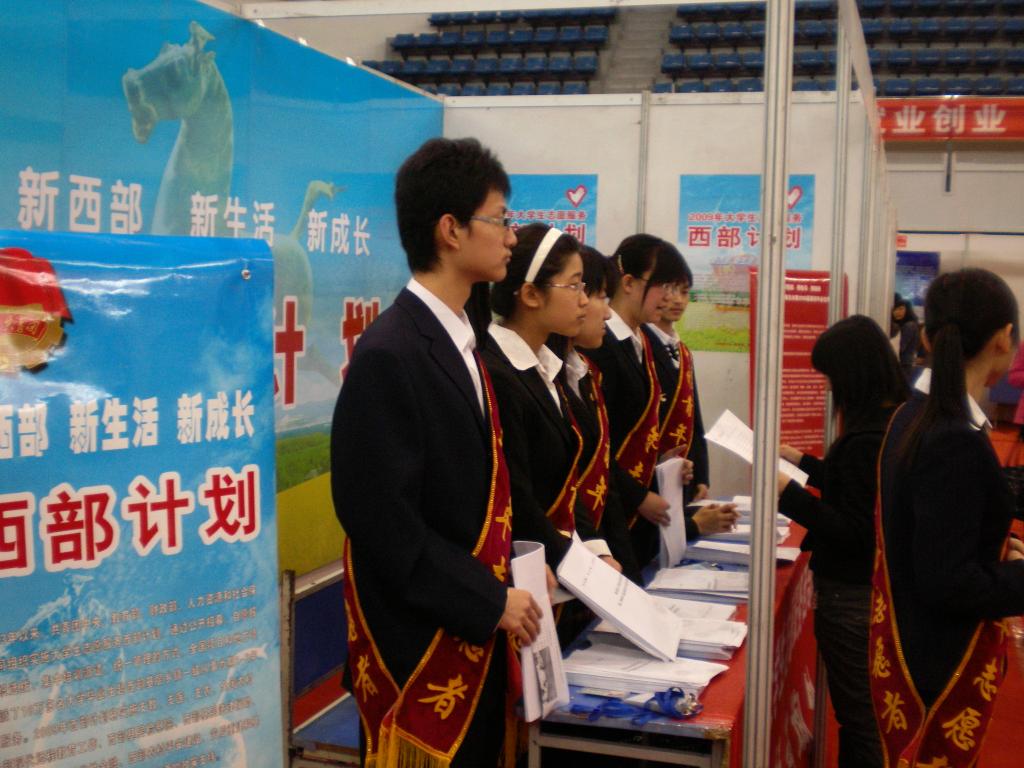 招聘会上,“西部计划”志愿者报名咨询活动也得到了众多大学生的广泛关注,仅半天时间,就已经有500余人进行咨询。据悉,今年西部计划志愿者活动口号为“新西部、新生活、新成长”,从4月15日开始至5月10日结束。大学生志愿服务“西部计划”活动是由共青团中央、教育部、组织部、人事部于2003年根据国务院有关要求共同组织实施。计划从2003年开始,按照公开招募、自愿报名、组织选拔、集中派遣的方式,每年招募一定数量的普通高等院校应届毕业生,以志愿服务的方式到西部贫困县的乡镇从事为期1-2年的教育、卫生、农技、扶贫以及青年中心建设和管理等方面的工作。西部计划的服务范围主要是内蒙古、广西、重庆、四川、贵州、云南、西藏、陕西、甘肃、青海、宁夏、新疆等西部12个省(区、市)和海南省、新疆生产建设兵团及湖南湘西州、湖北恩施州、吉林延边州部分地区贫困县的乡镇。(徐天驰 曹建明 杜盼盼 文 民安 建明摄影)